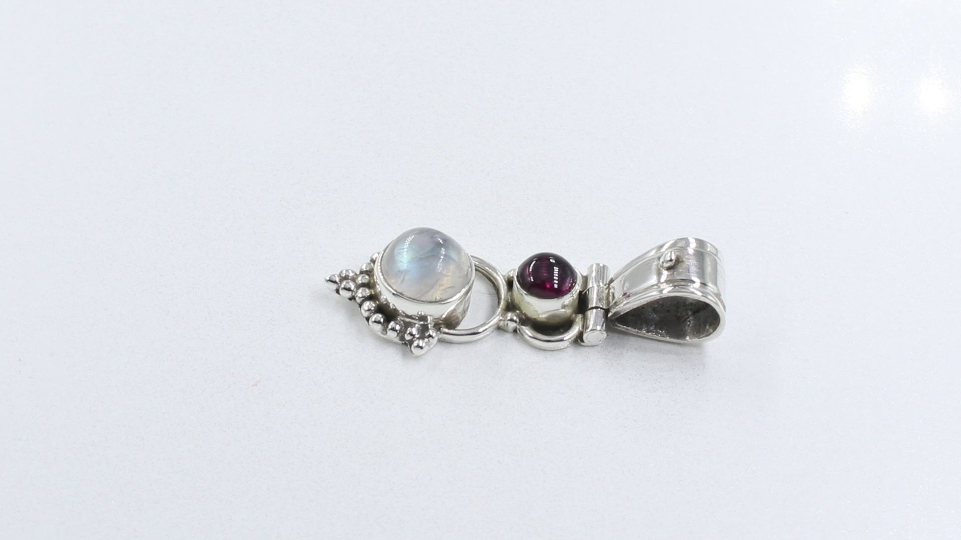 925 Silver Moonstone and Garnet Pendant